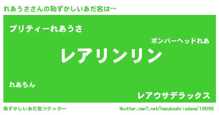 | 意味不明あだ名 | 『もやし科れあうさ属』『自称れあうさ』 |