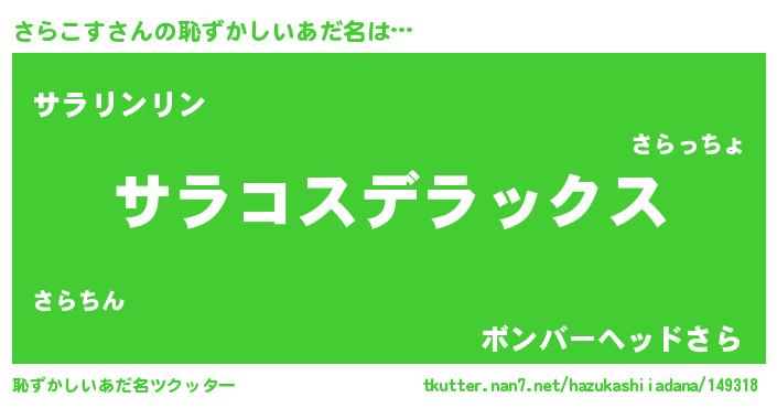 | 意味不明あだ名 | 『自称さらこす』『さらこすフォーエバー』 |