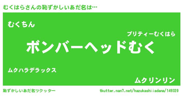 | ヒーロー風カッコイイあだ名 | 『慈愛の使者むくはら』『ネオムクハラ』 |