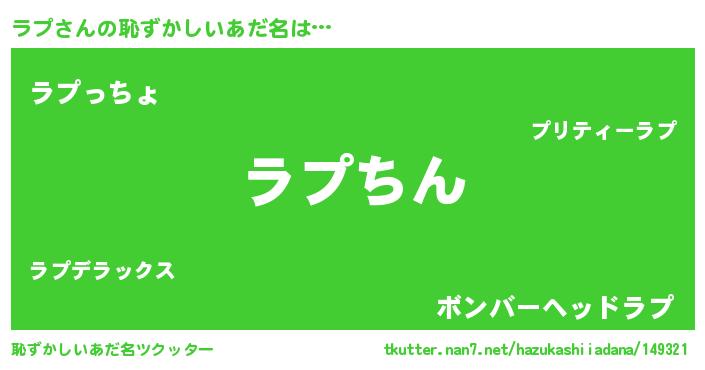| 意味不明あだ名 | 『永久保存ラプ』『住所不定無職ラプ(47歳)』 |