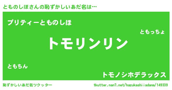 | ポケモン風あだ名 | 『ヒトモノシホ』『トモチュウ』 |