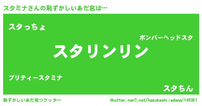 | ヘコむあだ名 | 『スタ太郎』『豆乳』『スタミナ(爆)』 |