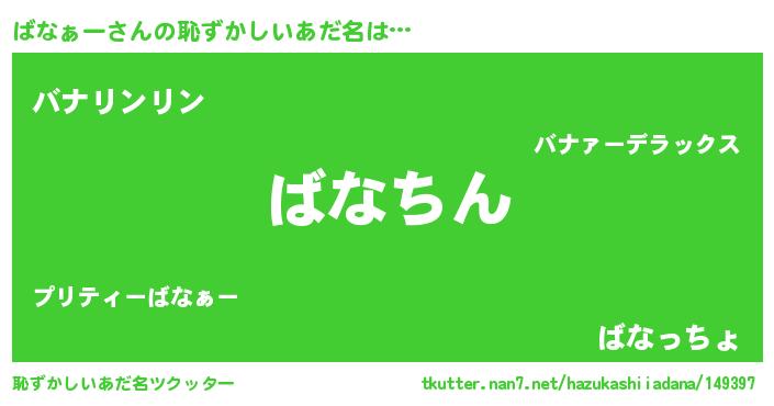 | ヒーロー風カッコイイあだ名 | 『仮面バナダー』『ネオバナァー』 |