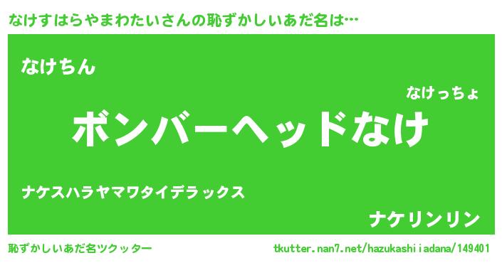 | ヘコむあだ名 | 『なけすはらやまわたい(遠い目)』 |