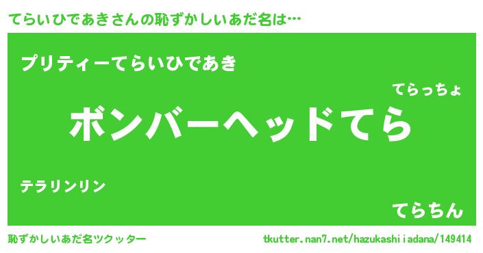 | ヘコむあだ名 | 『てらふぇ~』『てらいひであき(笑)』 |