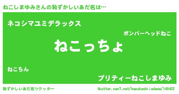 | ヒーロー風カッコイイあだ名 | 『仮面ネコダー』『スーパーネコシマユミ』 |
