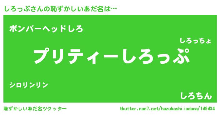 | 意味不明あだ名 | 『ペロリンしろっぷ』『永久保存しろっぷ』 |