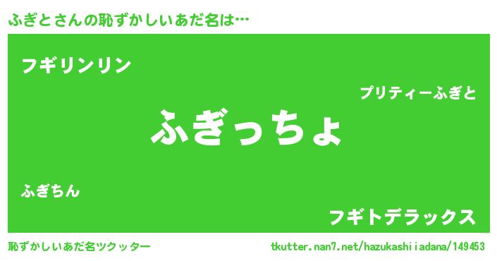 | ポケモン風あだ名 | 『フギトダネ』『ヒフギト』 |
