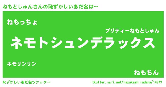 | 意味不明あだ名 | 『自称ねもとしゅん』 |