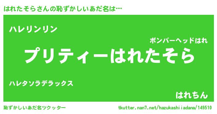 | ポケモン風あだ名 | 『ハレチュウ』『ヒハレタソラ』 |