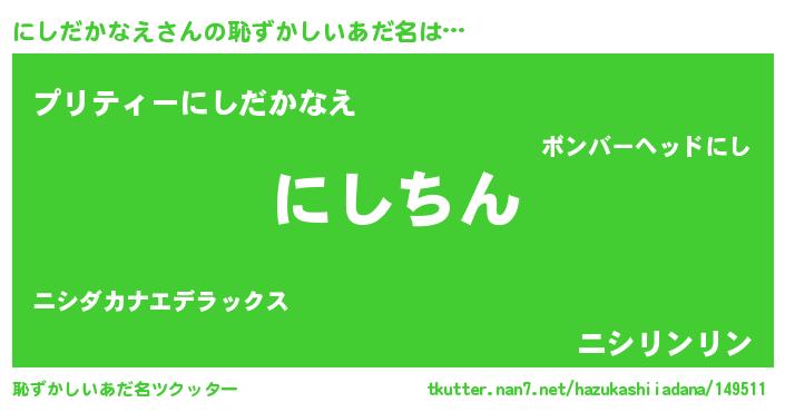 | ヘコむあだ名 | 『にしだかなえ(震え声)』『にしにー』 |
