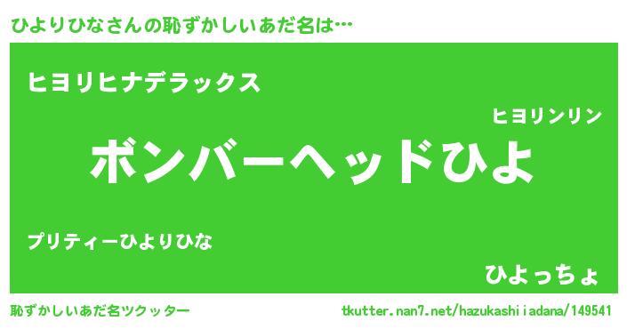 | ヘコむあだ名 | 『豆乳』『ひよっぺ』『ひよもー』 |