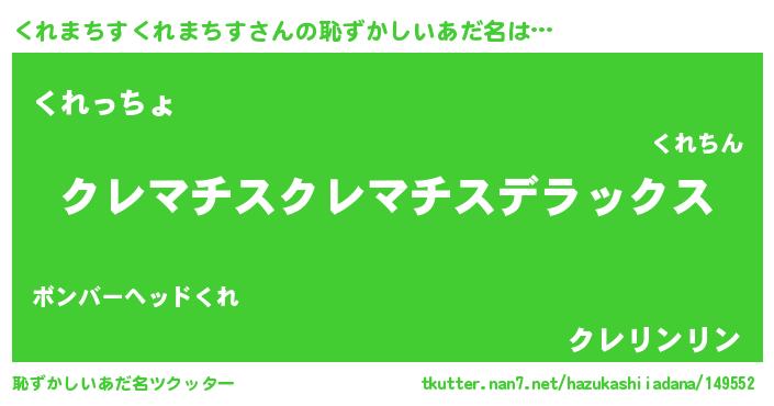 | 肩書あだ名 | 『くれまちすくれまちす閣下』 |