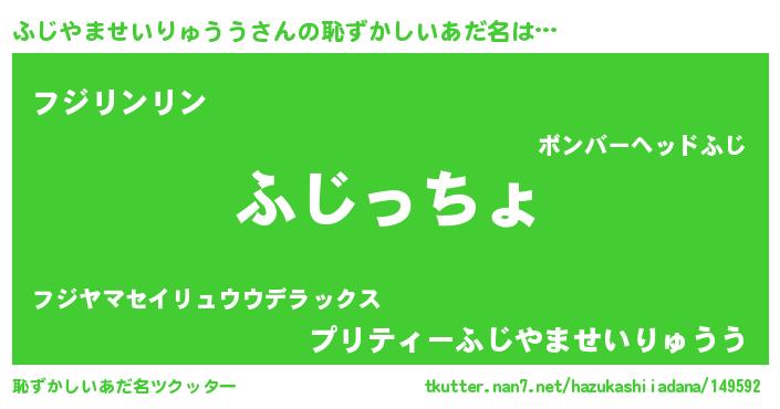 | 意味不明あだ名 | 『ふじやませいりゅううフォーエバー』 |