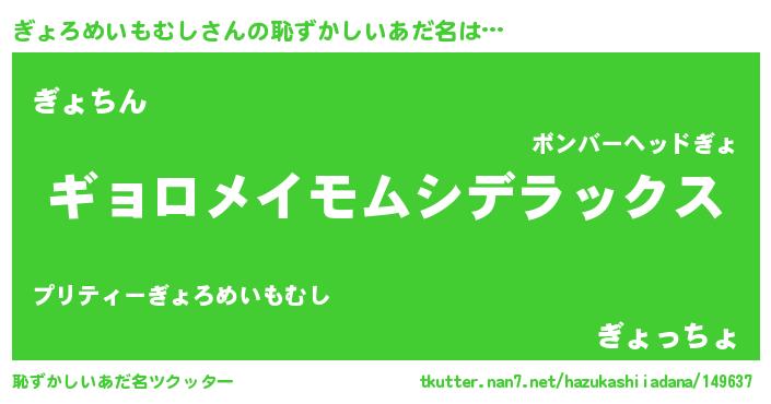 | 意味不明あだ名 | 『自称ぎょろめいもむし』 |