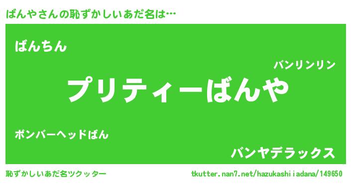 | ポケモン風あだ名 | 『バンキング』『バンチュウ』 |