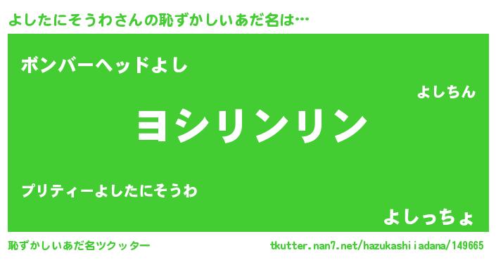| ヘコむあだ名 | 『よしっ子』『酢こんぶ』『よしもー』 |