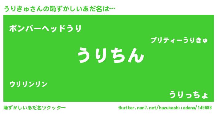 | 意味不明あだ名 | 『永久保存うりきゅ』『ペロリンうりきゅ』 |