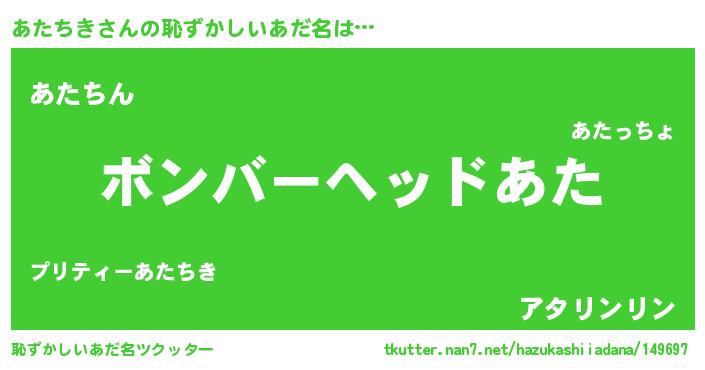 | ヘコむあだ名 | 『あたちき(笑)』『あたぷりん』 |