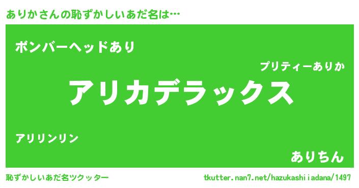 | ヒーロー風カッコイイあだ名 | 『究極戦士アリカ』『愛の使者ありか』 |