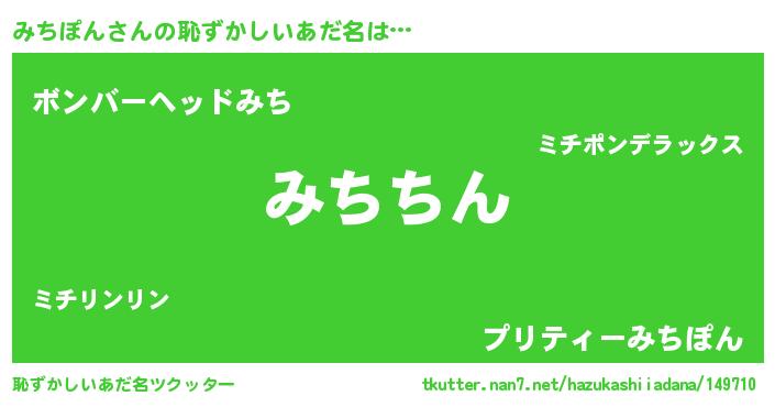 | 意味不明あだ名 | 『永久保存みちぽん』『ペロリンみちぽん』 |