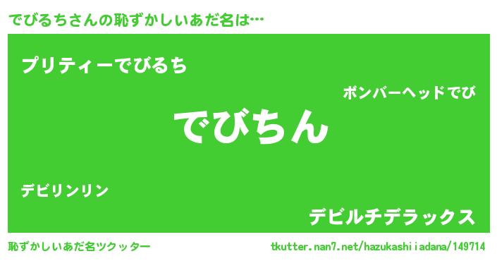 | 男性向けラノベタイトル風あだ名 | 『でびるちという概念が存在しない退屈な世界 』 |