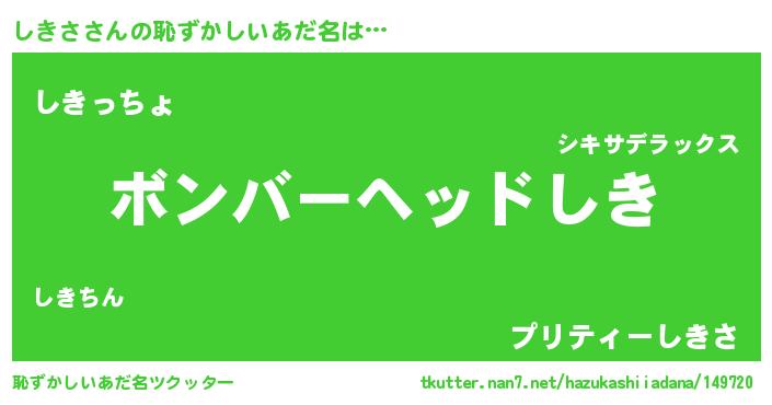 | ヒーロー風カッコイイあだ名 | 『愛の使者しきさ』『ウルトラしきさマン』 |