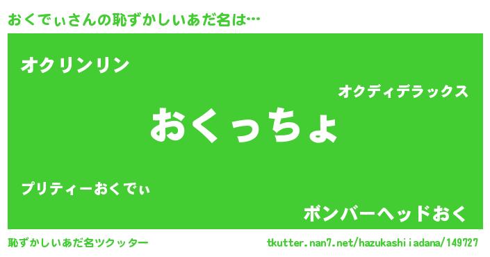 | 意味不明あだ名 | 『おくでぃフォーエバー』『自称おくでぃ』 |