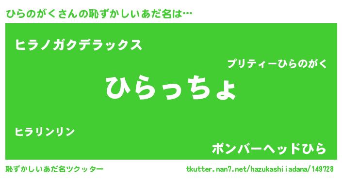 | 男性向けラノベタイトル風あだ名 | 『この素晴らしい世界にひらのがくを!』 |