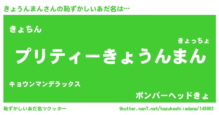 | ヒーロー風カッコイイあだ名 | 『スーパーキョウンマン』『仮面キョダー』 |