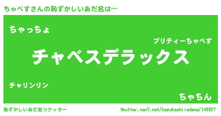 | 意味不明あだ名 | 『自称ちゃべす』『ちゃべすフォーエバー』 |