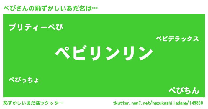 | 意味不明あだ名 | 『とにかく怪しいぺび』『ペロリンぺび』 |