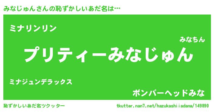 | 男性向けラノベタイトル風あだ名 | 『緋弾のミナジュン』『みなじゅんの憂鬱』 |