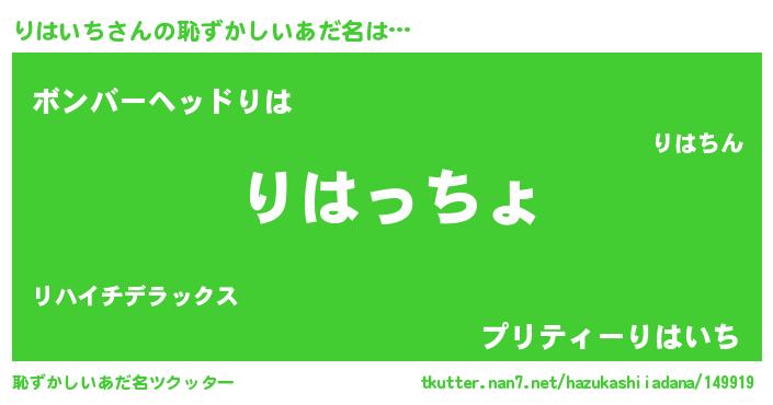 | 意味不明あだ名 | 『住所不定無職りはいち(89歳)』 |