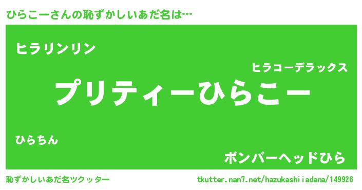 | 男性向けラノベタイトル風あだ名 | 『転生したらひらこーだった件』 |