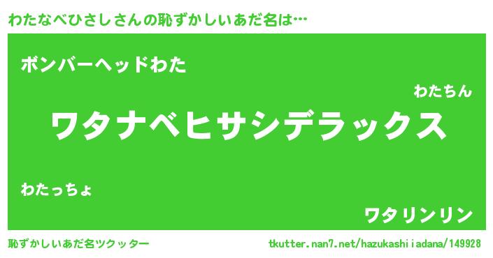 | ヘコむあだ名 | 『わたっぺ』『わたなべひさし(笑)』 |