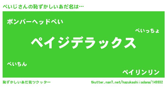 | ヘコむあだ名 | 『ぺいを』『なまこ酢』『ぺいじ(笑)』 |