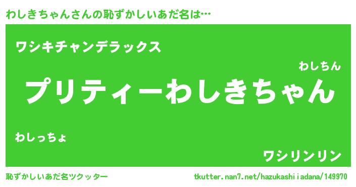 | ヒーロー風カッコイイあだ名 | 『スーパーワシキチャン』『仮面ワシダー』 |