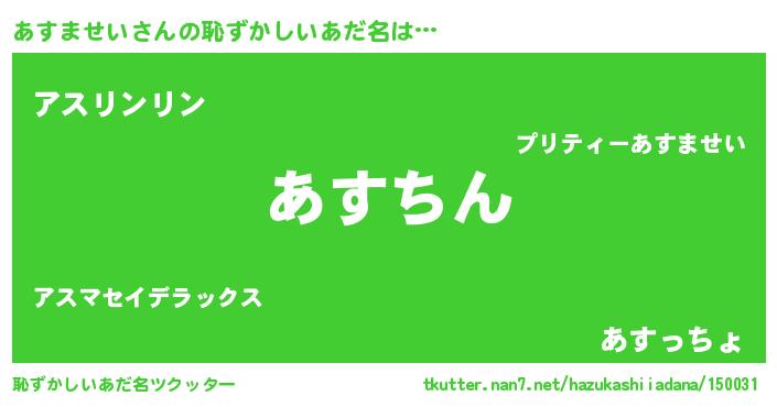 | 意味不明あだ名 | 『永久保存あすませい』 |