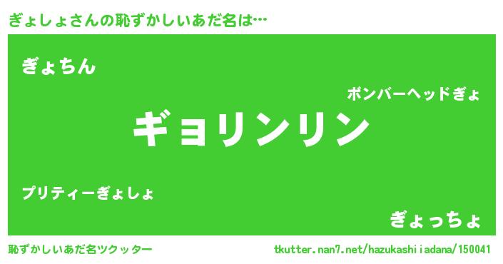 | 意味不明あだ名 | 『とにかく怪しいぎょしょ』 |