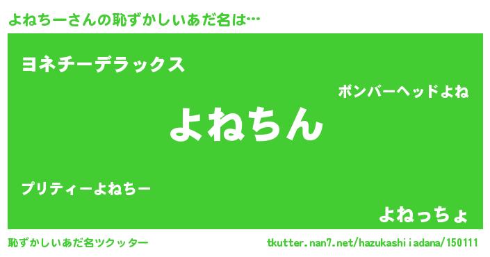 | ヒーロー風カッコイイあだ名 | 『ネオヨネチー』『最強戦士ヨネチー』 |