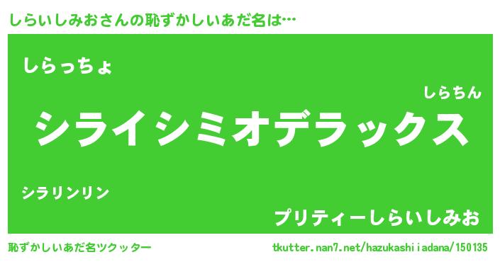 | 男性向けラノベタイトル風あだ名 | 『この素晴らしい世界にしらいしみおを!』 |