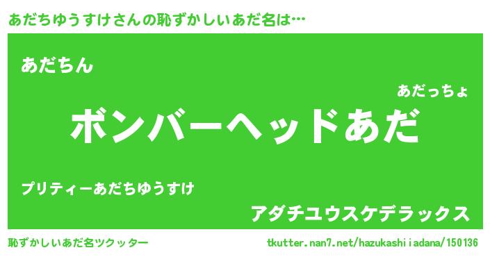 | 可愛いあだ名 | 『あだちゅっちゅ』『あだちゆうすけママ』 |