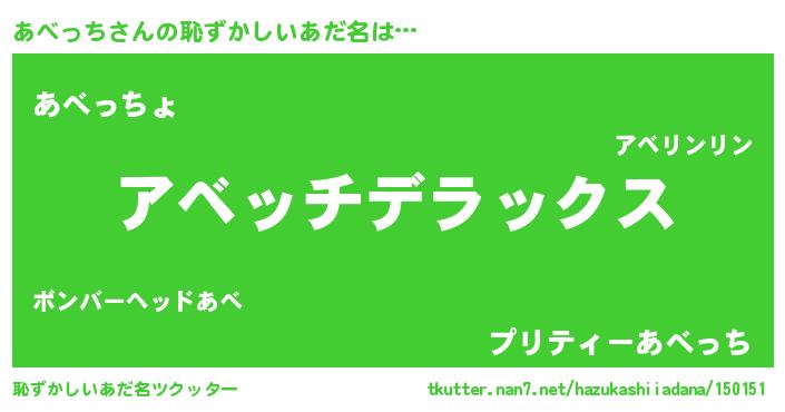 | 男性向けラノベタイトル風あだ名 | 『この素晴らしい世界にあべっちを!』 |