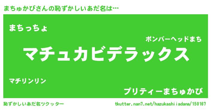 | ヒーロー風カッコイイあだ名 | 『仮面マチダー』『究極戦士マチュカビ』 |