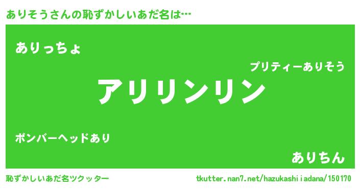 | 可愛いあだ名 | 『ぽよあり』『あっりぃー』 |