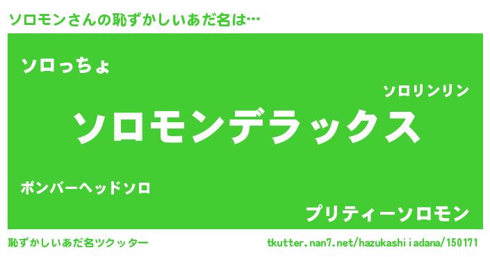 | ヒーロー風カッコイイあだ名 | 『最強戦士ソロモン』『仮面ソロダー』 |