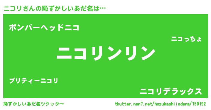 | 意味不明あだ名 | 『とにかく怪しいニコリ』『自称ニコリ』 |