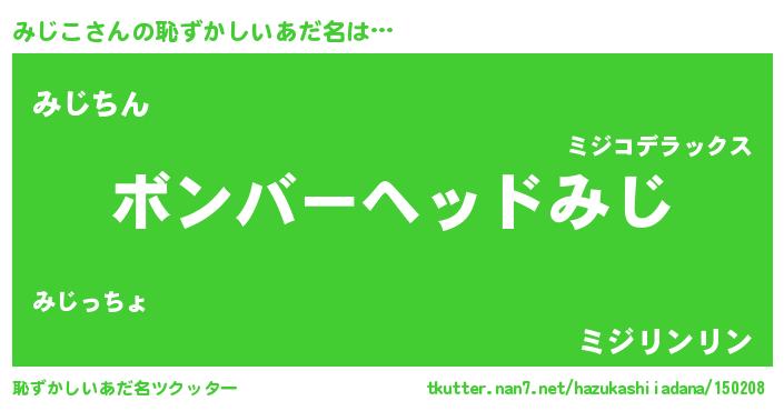 | 意味不明あだ名 | 『住所不定無職みじこ(11歳)』 |