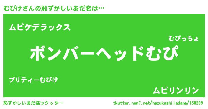 | 意味不明あだ名 | 『住所不定無職むぴけ(7歳)』『自称むぴけ』 |